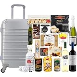Cesta de Navidad Lote navideño Gourmet con Maleta Trolley Equipaje de Mano 4 Ruedas giratorias 26 articulos Total (Gris)