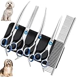 - 【Borde convexo afilado y punta redonda segura】El borde convexo afilado hace que el corte de estas tijeras de peluquería canina sea profesional, más suave y estable, ideal para eliminar enredos y...